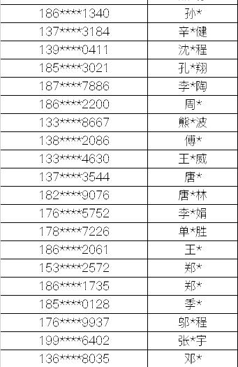 名单如下